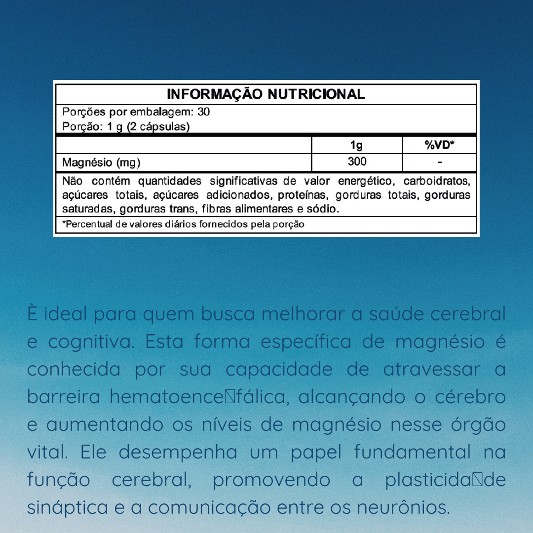 Ø Aprimora a saúde cerebral: Aumenta os níveis de magnésio no cérebro, o que é fundamental para a saúde neuronal.